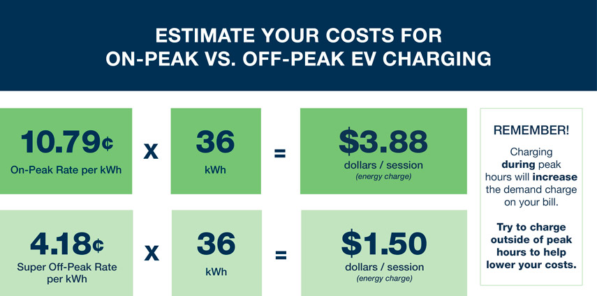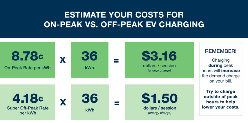 Electric vehicles cost less to fuel – and much less if you charge smartly. In fact, you can save up to 70%, when compared to the standard residential RG rate, by charging your vehicle smartly during Super Off-Peak Hours (basically, overnight).