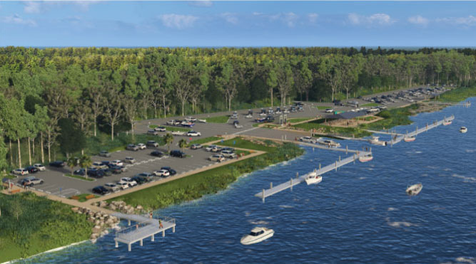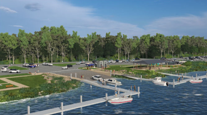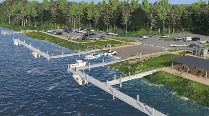 - Expand the existing two-lane boat ramp to a four-lane boat ramp.