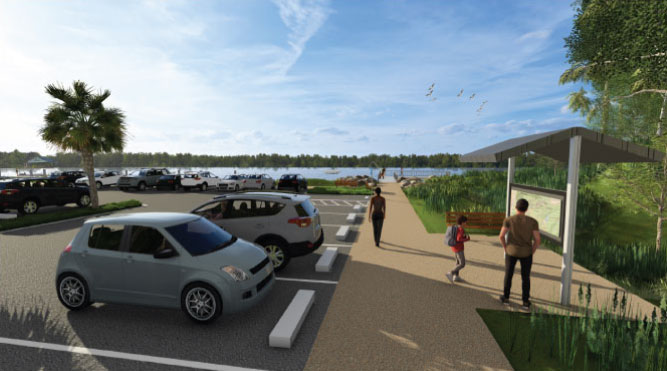 - Construct two new ADA compliant fishing piers, one at each end of the parking lot.